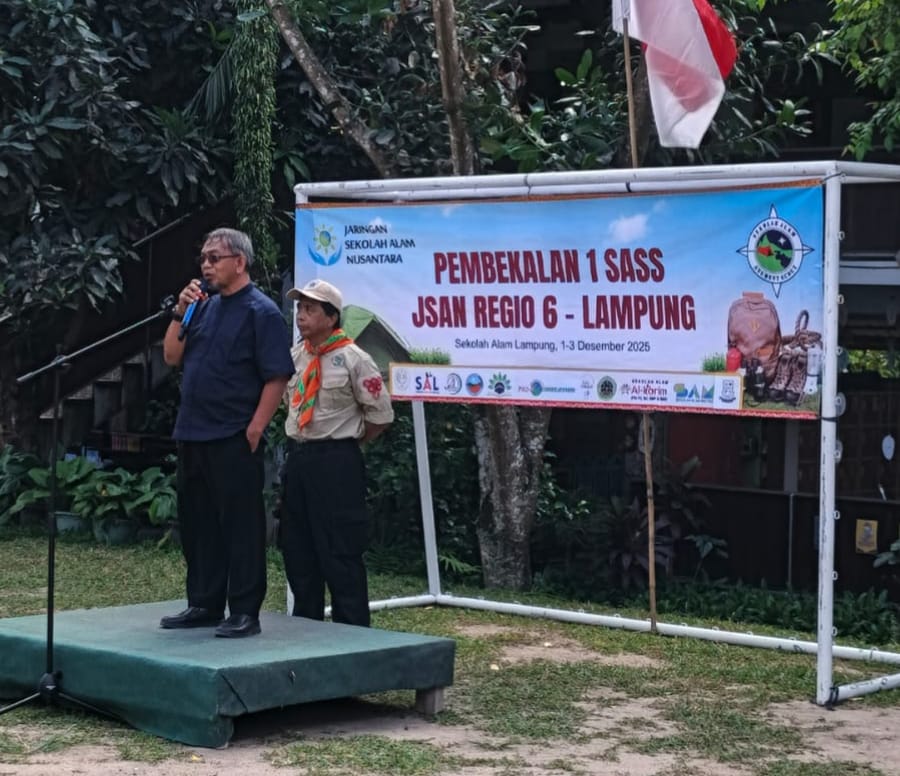 Lampung Selatan – 01 Desember 2025 — Ketua STAI Darussalam Lampung, Dr. H. Jamiluddin Yacub, M.Si., yang juga menjabat sebagai Ketua Regio 6 Jaringan Sekolah Alam Nusantara (JSAN) Provinsi Lampung, secara resmi membuka kegiatan Pembekalan Calon Pembina Sekolah Alam Student Scout (SASS) tahun 2025. Kegiatan ini dipusatkan di Sekolah Alam Lampung, Lampung Selatan, dan berlangsung selama tiga hari, mulai 01 – 03 Desember 2025.